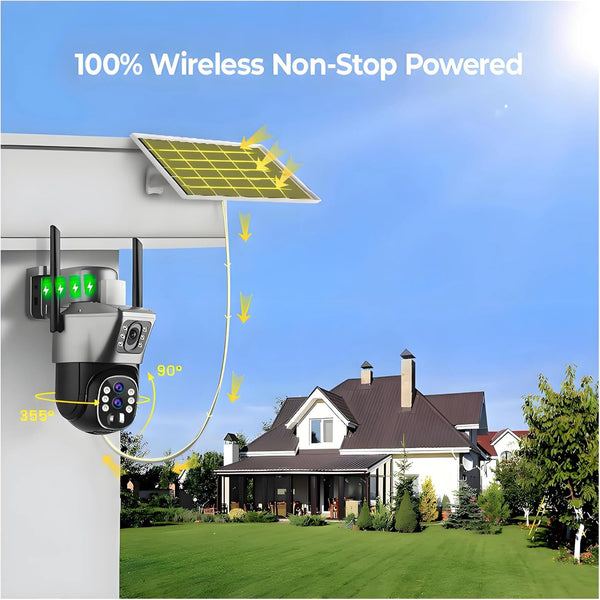 La caméra solaire améliore votre sécurité 24/7, sans besoin de recharges fréquentes, et s'ajuste automatiquement pour garder un œil sur votre maison.